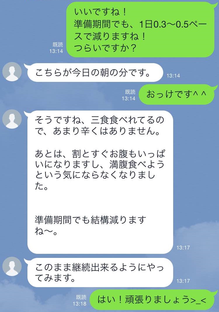 後は、LINEで毎日の体重と食事を送って頂き、細かくアドバイスしていきます。